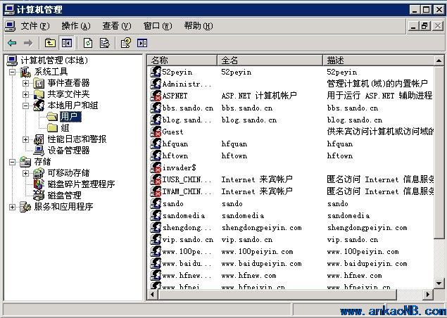 VPN配置好后我們還需要在服務(wù)器中建立一個賬號,用于VPN的連接,在計算機管理中,選擇“用戶”選項,如下圖: