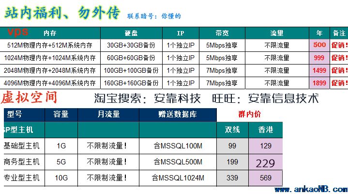 可是有人要說,我就是一個窮學(xué)生,預(yù)算就這么點(diǎn),那些幾百上千的虛擬空間服務(wù)器實(shí)在買不起。筆者自己也有過這種窮比的階段,在這里算是給自己打個小廣告吧,但更多的是幫助大家選擇合適的IDC服務(wù)商。因?yàn)楣P者是上述IDC的核心代理。所以拿貨價格你們懂的,基本上算幫大家?guī)Я耍行枰目梢酝驴础?/strong>