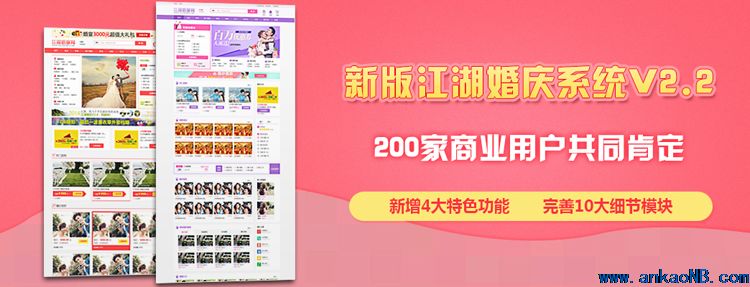 江湖婚慶門(mén)戶(hù)系統(tǒng)新版V2.2將于近期正式上線(xiàn),這是合肥江湖信息科技有限公司繼《江湖婚慶系統(tǒng)V2.0》之后的又一力作。相比較前面老的版本,新版本中做了很多的功能完善和優(yōu)化,不管是從用戶(hù)體驗(yàn)中,還是功能完整性,都有很大的提升。