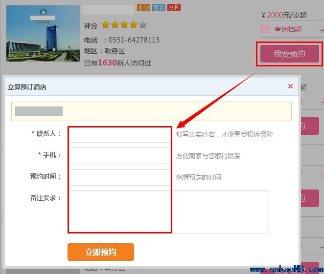 1、用戶(hù)有意向,點(diǎn)擊在線(xiàn)預(yù)約,留下姓名,手機(jī)和其他聯(lián)系方式;