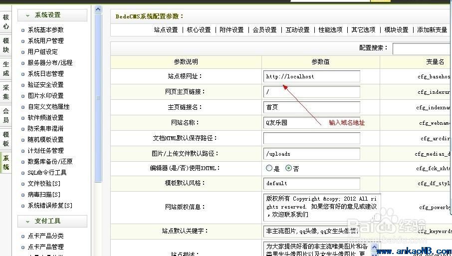 4.進(jìn) 系統(tǒng)—系統(tǒng)基本參數(shù)—填好你的根網(wǎng)址 。。記住后面別加 / 和其他的參數(shù)。