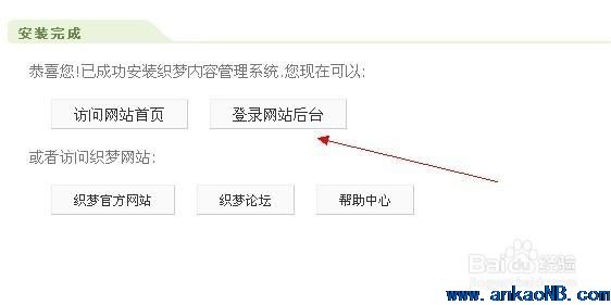 3.安裝完成,點(diǎn)擊進(jìn)入后臺。(如出現(xiàn)錯誤頁面可 直接 域名/dede進(jìn)入后臺}