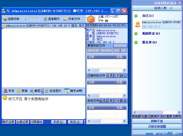 該軟件是一款局域網(wǎng)內(nèi)即時通信軟件, 基于 TCP/IP(UDP)。