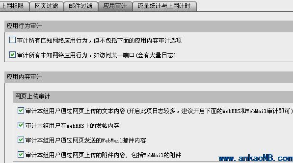 談到安全問題時,大多數(shù)人都只關(guān)注外網(wǎng)安全,但其實機構(gòu)的信息資產(chǎn)更多的不是被黑客竊取,而是通過內(nèi)部泄漏的。上網(wǎng)行為管理設(shè)備完善的訪問審計和監(jiān)控功能能夠有效防止信息通過Internet泄漏,并建立強大的內(nèi)部安全的威懾,減少內(nèi)部泄密的行為。對于郵件類型的應(yīng)用采用了深信服“郵件延遲審計”的專利技術(shù)來保證先審計后發(fā)送;對于通過Webmail站點發(fā)送郵件,全面記錄郵件正文和附件等;對于QQ、MSN等聊天內(nèi)容提供了全面的記錄功能;對于BBS、論壇發(fā)帖不僅根據(jù)關(guān)鍵字進(jìn)行過濾,成功發(fā)布的內(nèi)容也能全面記錄;內(nèi)網(wǎng)員工訪問的URL地址、網(wǎng)頁標(biāo)題、甚至整個網(wǎng)頁內(nèi)容,AC也能夠完全監(jiān)控和記錄等。訪問審計/監(jiān)控模塊為機構(gòu)構(gòu)筑了強大的內(nèi)部安全屏障。針對不同的用戶、用戶組,通過數(shù)據(jù)簡單的勾選,即可完成差異化的行為審計功能